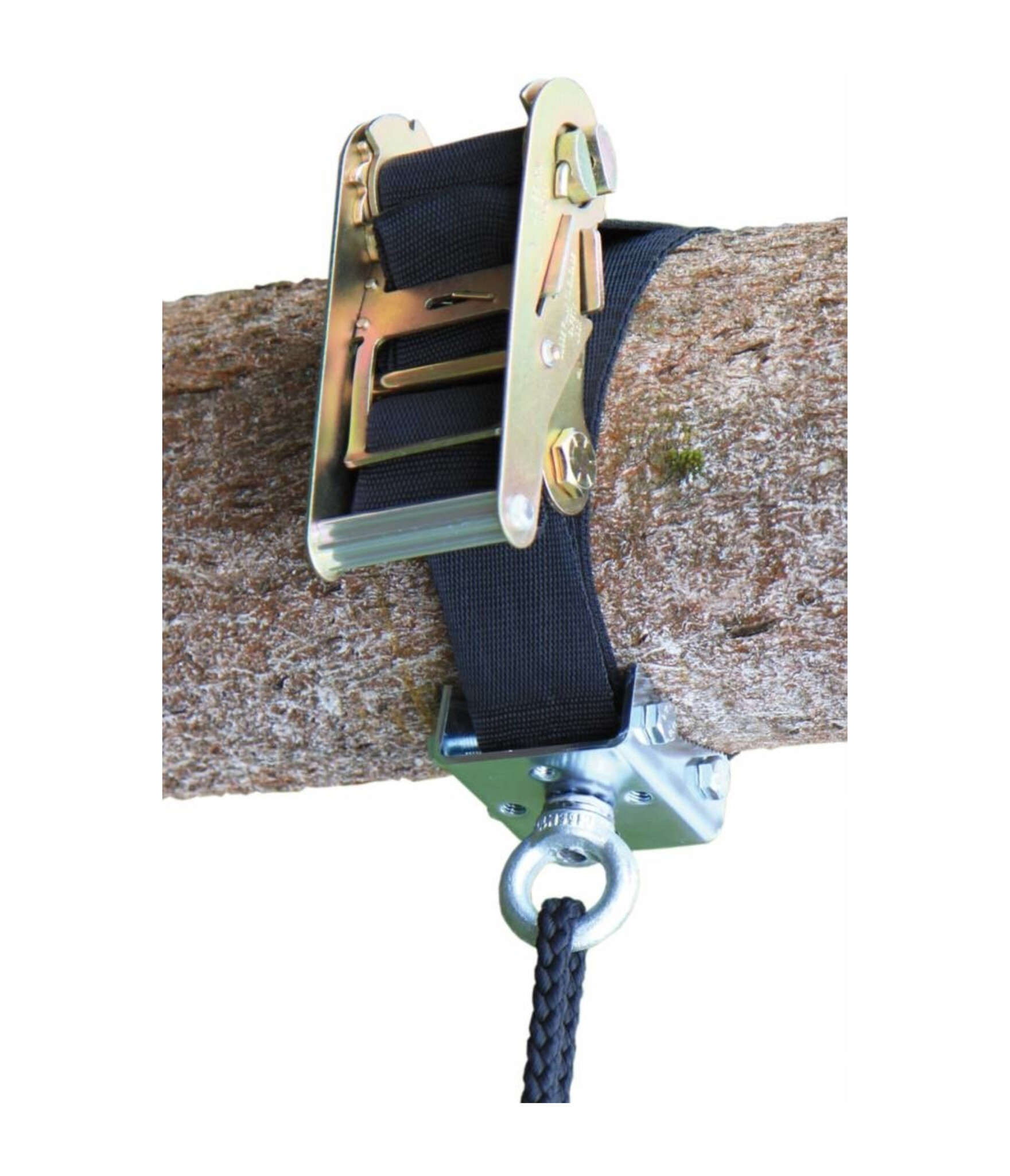 Speciaal voor allerlei ophangmogelijkheden waar eigenlijk niet in geboord kan worden, zoals boomtakken en andere plekken waar een normale haak niet te plaatsen is. Door middel van een sterke band met een ratel maakt u het geheel vast.
